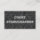 Estas tarjetas de visita en blanco y negro que incluyen todos los términos y palabras que usan los abogados y jueces y son perfectas para cualquier taquígrafo de la corte, seguro que se notarán y destacarán en la industria.