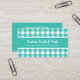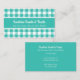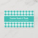 Tarjeta de presentación de panadería con placas verde azuladas y blancas