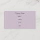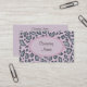 Una lámina de lavanda y un leopardo gris decoran el anverso de esta tarjeta de negocios de estilo retro. Utilice esta tarjeta de visita para una panadería, boutique, tienda, restaurante, catering, salón, peluquería, peluquería, profesor, diseñador, decorador, salón de belleza, maquillador, etc............................................................................................................................................................. Los diseños son de arte original.