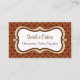 Esta elegante tarjeta de visita está decorada con un patrón de chocolate y crema. Personalizar esta tarjeta de visita para satisfacer sus necesidades. Añada o elimine información, cambie el estilo de letra, el tamaño de letra, etc... El diseño es de arte original. Use esta tarjeta de visita de estilo vintage para una panadería, una dulcería, un chocolatero, una chocolatería, una pastelería, una heladería, un bed and breakfast, una heladería, una cafetería, una cafetería, comidas gourmet, etc..