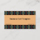 Patrón de estilo Suroeste Modelo de tarjeta de visita Suroeste. Patrón vibrante sobre fondo negro y oscuro que se puede cambiar para adaptarse a tu gusto. ... Experimente con este tema abstracto del patrón suroeste simple y colores, imágenes y estilo de tarjeta. Una tarjeta temática de arte genérica para modelos corporativos a pequeños negocios. Si te gustan las tarjetas de visita abstractas de sabores del suroeste. echa un vistazo y personalizar tu tipo de letra y juega con las imágenes para adaptarte a tu gusto.