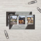 Tarjeta de visita con su propia cartera de fotos enmarcada por un falso cuero con un diseño moderno plateado. Hermoso para un arquitecto o profesional en el campo de la construcción.