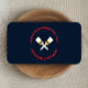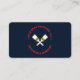 Logo de estilo emblema de pincel de pintor de estilo casa con dos pinceles cruzados. Fondo azul marino con texto rojo. Para obtener material de marketing adicional que coincida, póngase en contacto conmigo en maurareed.designs@gmail.com. Para más logotipos prehechos visita logoevolution.co. Diseño original de Maura Reed.