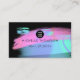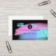 Tarjeta de visita con pinceles rosa y azul que rodea un fondo negro.