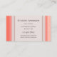 Elegante tarjeta de visita con un moderno diseño a rayas en coral y colores rosados con sutiles destellos de luz. Hermoso para un planificador de eventos o para cualquiera en la industria de la belleza.