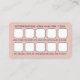 Esta tarjeta de visita tiene un elegante diseño de "sombra de un rosa que se le da" con tipografía mixta, y cuenta con un clásico sistema de recompensas en la parte trasera para que los clientes que regresan reciban algo, es decir, descuento, artículo gratis, etc. Rellene los detalles con el nombre de su empresa, el tipo de servicio, el número de teléfono, el sitio web, la dirección y el código qr, y añada al dorso el horario de la tienda, el mensaje y la información de recompensa del personalizado.