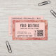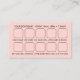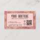 tarjeta de visita personalizado con diseño metálico color rosado con tipografía sans-serif y sistema de recompensa clásico para que los clientes reciban algo, es decir, descuento, artículo gratis, etc. Haga clic en 'Personalize' para agregar los detalles de su empresa, incluyendo el nombre, tipo de servicio, número de teléfono, sitio web, dirección, código qr con texto, horas de almacenamiento, información adicional y sistema de recompensas en la parte posterior.