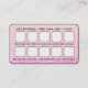 Esta tarjeta de visita tiene un diseño de gradiente de medio tono rosado de moda con tipografía sans-serif, y cuenta con un sistema de recompensa clásico en la parte posterior para que los clientes puedan volver a recibir algo, es decir, descuento, artículo gratis, etc. Rellene los detalles con el nombre de su empresa, el tipo de servicio, el número de teléfono, el sitio web, la dirección y el código qr, y añada al dorso el horario de la tienda, el mensaje y la información de recompensa del personalizado.
