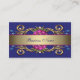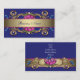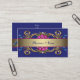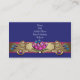 Tarjeta de presentación floral azul elegante con remolinos dorados. Agregue sus datos en la parte delantera y/o trasera simplemente eligiendo el botón naranja "¡Personalízala!" para comenzar a agregar los detalles de su evento, estilo de fuente, tamaño y color de la fuente, y redacción. Tenga en cuenta que todos los diseños de invitaciones que encontrará en Zazzle son gráficos impresos en papel plano sin joyas reales, lazos, relieves, grabados ni piezas o partes agregadas.