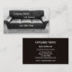 Tarjeta de negocios de intercambio profesional de muebles con sofá de cuero vintage en blanco y negro. Esta tarjeta es ideal para una tienda o comerciante de muebles de segunda mano o usados, así como para un negocio de tapicería o reparación de muebles.