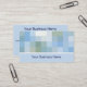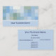 Una elegante tarjeta de visita para muchos tipos de negocios, con cuadrados de color en tonos azules, grises y blancos, con letras azul oscuro. Completa y fácilmente personalizable.