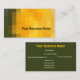 Una tarjeta de visita elegante y atractiva para muchos tipos de negocios, con un patrón de cuadrados en tonos dorados, amarillos, mandarinos y marrón chocolate. Las letras delanteras son negras y las letras traseras son blancas sobre un fondo marrón oscuro. Completa y fácilmente personalizable.