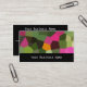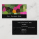 Una atractiva tarjeta de visita para muchos tipos de negocios, con un patrón abstracto de bloques en naranja quemado, pizarra, verde mosquito, rosa y negro, con letras blancas. Completa y fácilmente personalizable.