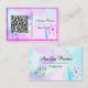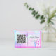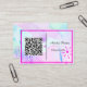 Esta es una tarjeta de visita de tamaño británico/europeo y está disponible en más tamaños. Cambie el código QR, el nombre y el título del trabajo a su especificación. Diseñado con una mente artística, tiene un fondo de color rosa, morado, con un código QR, nombre y título de trabajo. La parte posterior de la tarjeta tiene el nombre y el título.