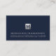 Haga una impresión duradera con nuestra tarjeta de servicios de asesoramiento financiero. El emblema inicial del logotipo del monograma plateado cepillado, junto con la información de su empresa en tipografía clásica, se muestra contra el elegante fondo azul marino. Nombre del personalizable, título e información de contacto sobre la espalda azul sólida. Entregar esta sofisticada tarjeta a clientes potenciales, socios y colegas para que transmitan su profesionalismo y experiencia.