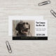 Una tarjeta de visita para entrenadores, groomers, perreras, etc. Una hermosa fotografía en color al estilo retrato de un perro Labrador Negro sobre una correa de cuerda, sentado tranquilamente al lado de su amo. Personalizar con su propia información de contacto personal o empresarial.