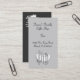 Esta plantilla de tarjeta de visita personalizado tiene un diseño sencillo de un lugar de puesta en escena de platería en blanco y negro sobre una servilleta de mesa blanca bonito adornada en gris. La fuente es un guión retro. Haga clic en Personalizar para cambiar fuentes, colores de fondo y más, incluso para guardar el diseño para más adelante.