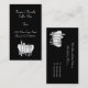Esta plantilla de tarjeta de visita personalizado tiene un diseño sencillo de un lugar decorado con platería en blanco y negro sobre una servilleta de mesa blanca bonito adornada en gris sobre un elegante fondo negro. La fuente es un guión retro. Haga clic en Personalizar para cambiar las fuentes, los colores de fondo, agregar el logotipo de su empresa y mucho más, e incluso guardar su diseño para más adelante.
