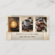 Tarjeta de visita con sus propias fotos personalizados (opcional) enmarcadas con un elegante diseño de color crema y café.