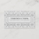 Una tarjeta de visita profesional residencial y comercial con suelo de baldosa y suelo con motivos geométricos de rombo blanco en el suelo o en las paredes.