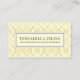 Una tarjeta de visita profesional residencial y comercial con suelo de baldosa y suelo con motivos geométricos de rombo blanco en el suelo o en las paredes.