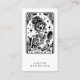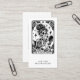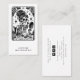 Una tarjeta de presentación de artista de maquillaje de estilo tarot única con un esqueleto con herramientas del técnico de uñas. Un estilo único con un toque de humor.