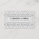 Una tarjeta de visita profesional residencial y comercial con suelo de baldosa y suelo con motivos geométricos de rombo blanco en el suelo o en las paredes.