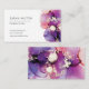 Una magnífica tarjeta de visita con tintas de alcohol color agua morado, rosa y dorado, adecuada para cualquier profesión creativa. Hermosa página trasera.