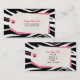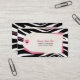 Tienda de ropa / tarjeta de visita comercial con fondo de cebra y ilustracion de etiquetas de compra en la parte delantera y trasera. Personalice el texto con su información.