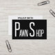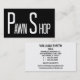 Estas tarjetas de visita en blanco y negro son perfectas para cualquier tienda de peones, seguro que se notarán y resaltarán a cualquiera que busque una tienda de peones.