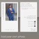 Esta personalizado tarjeta de visita moderna para asesores financieros independientes y autónomos cuenta con una plantilla para añadir tu propia foto favorita. Todos los detalles como profesión, nombre y medios sociales o información de contacto se pueden personalizar individualmente. Si no necesitas información, borra la línea.