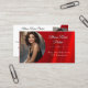 Haga una impresión inolvidable y brille como una estrella con tarjetas de visita de fotos personalizados bajo un elegante brillo de rubí. Esta tarjeta de visita de personalizable ofrece espacio para colocar tus fotos delante y atrás junto con tu nombre, título del concurso, plataforma, presupuesto o mensaje personal, y dirección web o URL de medios sociales.