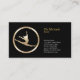 Esta simple tarjeta de visita de coreógrafo presenta un fondo negro de chorro con un icono de salto de bailarina de oro en el lado izquierdo de la tarjeta, mientras que su nombre, título y detalles de contacto aparecen a la derecha. Diseñado para el entretenimiento, animador, fiesta, diversión, niños, reuniones, fiestas, temas de baile.
