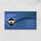 Esta sencilla y elegante tarjeta de edición de vídeo profesional cuenta con un fondo azul. Una onda de matiz azul fluye de izquierda a derecha, dividiendo la tarjeta en dos secciones. Un icono circular de clip de vídeo cromado se sienta en esta onda, en el lado izquierdo de la tarjeta, mientras que su nombre y título aparecen en la parte superior izquierda y su nombre de negocio y detalles de contacto aparecen en la parte inferior derecha. Diseñado para cámara, fotografía, fotógrafo, imagen digital, edición digital, temas de cine.
