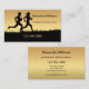 Una elegante tarjeta de visita con una silueta de dos personas sobre un fondo de gradiente dorado. Hermoso para entrenador deportivo de atletismo o entrenador personal de fitness.