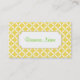Esta elegante tarjeta de visita está decorada con alegres motivos en blanco y amarillo. Personalizar esta tarjeta de visita para satisfacer sus necesidades. Añada o elimine información, cambie el estilo de letra, el tamaño de letra, etc...El diseño es de arte original.Utilice esta elegante tarjeta de visita para un spa, salón, pequeña empresa, decoración doméstica, planificador de eventos, cuidado infantil, etc...