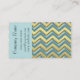 Dos tonos turquesa y dorado gradiente. Elegante y a la moda: esta tarjeta de visita de Zig Zag Chevron destaca y es un diseño versátil y de moda para una variedad de opciones de negocios o de profesión, incluyendo diseño interior, spas de belleza, terapeutas, bufetes de abogados, agencias de viajes, inmobiliaria, organizadores de eventos, boutiques y más. Es un poco divertido y divertido, aunque sigue siendo clásico: un calendario de bolsillo de 2019 en la parte trasera añade valor a su tarjeta de visita que sus clientes apreciarán. Personalizar con su propia información personal. NOTA: Todos los efectos purpurinas, dorados, gemas, plata, encaje, metálicos son creados por el artista para parecer realistas, son mejoras diseñadas artísticamente solamente