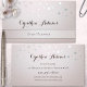Elegante tarjeta de visita con confeti plateado brillante sobre un fondo de gradiente rosa. Hermoso para un planificador de eventos o para cualquiera en la industria de la belleza.