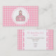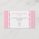 Una tarjeta de visita con fondo de gingham rosa con guarnecido rosa. Texto rosa y marrón. Personalice su información. En el lado opuesto se encuentra el fondo gingham. Logo de The Pink Schoolhouse dentro del círculo rosado. Para ajustar el texto o cambiar el tamaño, estilo o color de la fuente, haga clic en "¡personalizar!"