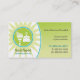 Un aspecto gráfico para una limpieza o servicio de limpieza. En el círculo verde, reseñado por un color turquesa y con una ráfaga verde pálido, se representan un palo y una escoba para sugerir un hogar o una oficina reluciente y limpio. El gradiente verde de la parte delantera contiene la información más importante mientras que la ráfaga se repite al revés. Disponible en colores alternativos con productos coincidentes.