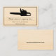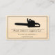 Tarjeta de presentación para el servicio de taladros de árboles de taladrado de madera. Cuenta con una sierra de energía negra y un lugar que puedes personalizar con tu propio nombre e información.