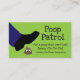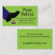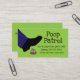 Perro divertido limpiar la tarjeta de negocios hecha en verde con gráficos de un pie pisando un montón de canina. Personalice el texto negro, frontal y posterior, para satisfacer las necesidades de su pequeña empresa.