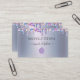 El diseño de una tarjeta de visita de panadería sencilla, limpia y minimalista, con un ilustracion de goteo purpurina y bizcocho. ... Un elegante fondo metálico plateado y violeta con tipografía de guiones crea un aspecto moderno. Personalice con el nombre de la empresa. El lado inverso está diseñado en un estilo limpio y mínimo con el nombre de la empresa y la línea de la etiqueta comercial y la información de contacto personalizada con el código Qr. Una simple, moda y elegante tarjeta de visita para la panadería, panadería, panadería, panadería emprendedora, chef, abasto y mucho más. #purplebakerybusiness card