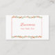 Un sencillo diseño de hojas y hojas enmarca tu información personalizada en la parte delantera de esta tarjeta de visita. La parte posterior tiene plantillas para obtener más detalles. Todos los artículos son rellenados por Zazzle y están garantizados un 100% de satisfacción. Para sus pedidos y problemas de envío, póngase en contacto con el Servicio de Atención al Cliente de Zazzle a través de https://goo.gl/nCgptf