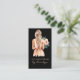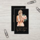 Elegante vestido de novia costura tarjeta de negocios, con acuarela de arte de un chica con vestido de bonito sosteniendo flores, contra un fondo negro. Personalice el texto para adaptarlo a sus necesidades empresariales. Una preciosa tarjeta para tu negocio de sastrería.