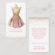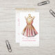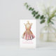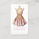 tarjeta de bonito de negocios hecha en blanco, con gráficos de un coctel rosado y dorado / vestido de baile y con acentos purpurina dorado. Personalice el texto para adaptarlo a sus necesidades empresariales. Una preciosa carta de descanso para cualquier sastre de ropa.