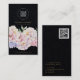 Sencilla y elegante tarjeta de visita en kraft negro con flores de acuarela pastel y código QR en la parte posterior. Personalizar con el logotipo de su empresa, nombre, cargo/título, dirección URL y datos de contacto de la empresa. Cambie fácilmente el color de fondo de la parte posterior de la tarjeta para que se ajuste a sus necesidades y preferencias. Perfecto para floristas, decoradores, spa o empresa de belleza y bienestar.