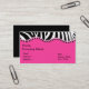 Haz una declaración con esta tarjeta de presentación de Funky Zebra, diseñada para cualquiera que ame patrones audaces y colores vibrantes. Con un llamativo estampado de cebra en blanco y negro combinado con un toque brillante de rosa, esta tarjeta combina diversión, moda y profesionalismo en un diseño llamativo. El diseño divertido y elegante es perfecto para boutiques, profesionales de la belleza, empresarios creativos, estilistas, planificadores de eventos y cualquiera que quiera que su marca se destaque.