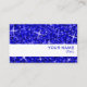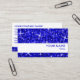 Tarjeta de visita con un diseño moderno con estrellas diseminadas sobre un estilizado fondo de patrón "secuin look" en tonos azul oscuro, y texto azul sobre fondo blanco Tenga en cuenta que esta es una imagen de arte digital impresa, no brilla ni contiene purpurinas o secuencias reales.