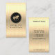 Moderna tarjeta de visita ecuestre con fondo falso dorado y una imagen de caballo dorado.